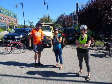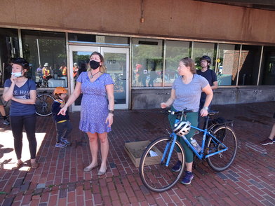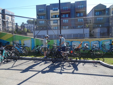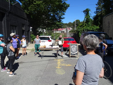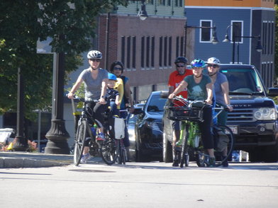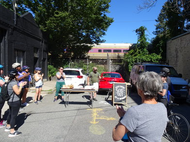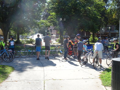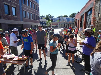 Jamaica Plain, plus our local bike shop, Busted Knuckle, by bike, with free food along the