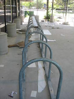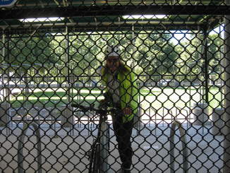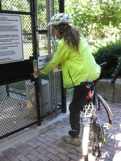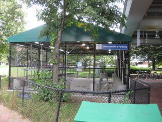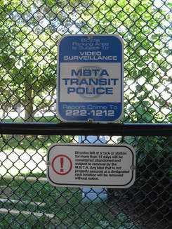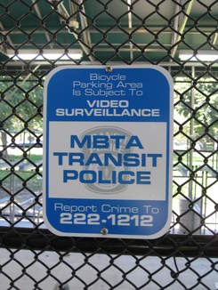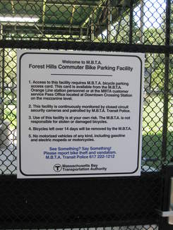 | The RozzieBikes coordinating committee biked through Forest Hills on Wednesday night after a meeting and were surprised to see that the bike cage, which has been under construction all summer, was effectively complete. I went back on Saturday after tabling at the Roslindale Farmers Market and checking out possible new access routes to the Francis Parkman monument on Jamaica Pond, and found that the MBTA had put up signs. I tried my Bike Charlie Card, and it worked! |